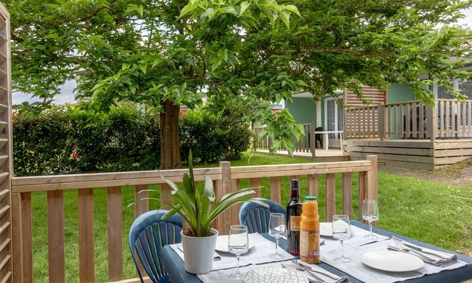The property is located in Maché, in a holiday village. The "3 - Eco T2 Cottage" (with step-free access) has everything you need for a comfortable vacation. The 28 m² property consists of a living room with a sofa bed for 2 people, a kitchenette with a 90/100L fridge-freezer, a bedroom, and a bathroom with a toilet, and can therefore accommodate 4 people. This accommodation does not offer air conditioning.
