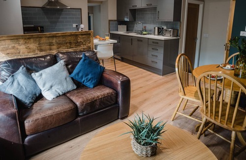 The open-plan living space includes a kitchen with electric oven and ceramic hob, microwave, fridge/freezer, dishwasher, washing machine, a sitting area with Smart TV and a dining area with seating for three. The bedrooms include two doubles, one with en-suite shower. To the outside is roadside parking for two cars. Within 0.1 miles there is a shop and pub. WiFi, fuel, power, bed linen and towels are included in the price. Pets and smoking are not allowed. Pule Hill is a lovely escape for families or two couples, whatever time of year.