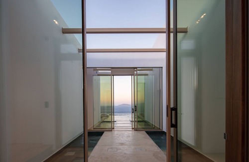 The entire concept rounds off with the stunning 240 degrees uninterrupted sea views of the white village and lights of Agios Nikolaos, as well as the relaxing sound of the waves splashing. 2 swimming pools and several water spots in and around the house, made with exclusive Rajasthan marble tiling, always reflect the color of the sea offering an unprecedented infinity look all day long, while seating areas at different sea levels provide a wide range of panoramas.