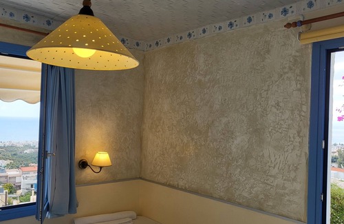 Quadruple Room full view in blue apartment mountain view | Apartment in Heraklion Prefecture, Greece