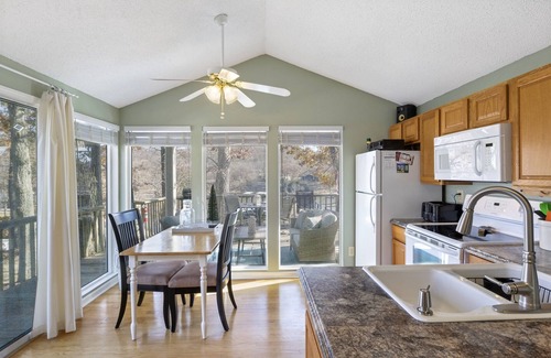 Step out into the lake view deck for coffee in the morning or wine at sunset. Stroll a few steps to the open-air brick fireplace. The lake is just down the hill with a boat slip and trailer parking included in your stay. No boat? Fish from the dock or take a swim in the calm cove waters. Your best lake memories await at CastAway!