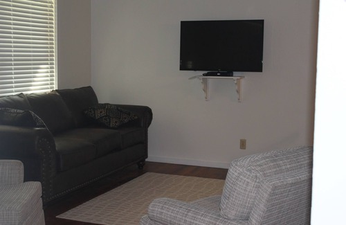 This 3/2 cabin lies on a large, open spaced property that gives the impression of being in the country while being only a short walk to historic Gruene. You can hear the water flowing over the rapids and see the Gruene water tower lit at night. Deer make it a habit to stroll across the large lawn and graze when the sun goes down. This home has river access and is literally just above the rapids near the Gruene bridge. Our cabin is minimally, but comfortably furnished. The appeal to staying on our property is easy access to nature with huge trees, wildlife and a simplistic lifestyle. The covered porch offers a comfortable space to gather for meals, games, or just a quiet moment. The deposit will hold the reservation. Payment in-full is due 28 days prior to arrival. Travelers who cancel at least 60 days before check-in will receive a refund or credit for another reservation to be used within one year.