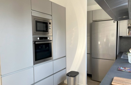 a large refrigerator, an oven, a microwave, a dishwasher, a washing machine, an electric wine cellar, a coffee maker, a toaster, a mixer, all the dishes and equipment for cooking and baking, 2 hairdryers, an HD smart TV, Wi-Fi and a vacuum cleaner.