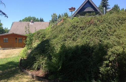 In a wonderful natural environment, with a great view of the Eder Valley and in a quiet location is the house with a large garden, meadows, terrace, barbecue area and fireplace. The house has a beautiful view of the valley from the terrace, two bedrooms (maisonette and loft bed) and a cozy kitchen. The living room offers plenty of light and space for relaxation and tranquility. It offers the ideal accommodation to relax, discover, hike (direct entry from the house possible), canoeing, skiing, to relax and to breathe fresh air.