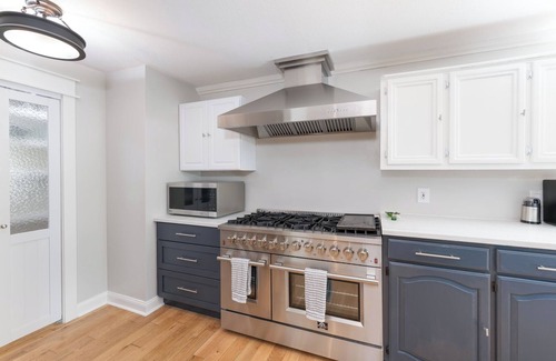 Washer/Dryer upstairs. Two gas ovens, a dishwasher, and two sinks in the kitchen.