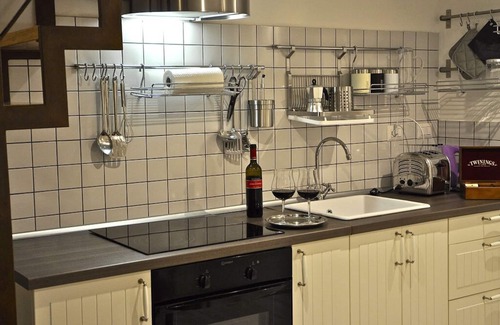 Luxurious 450 sq feet open space apartment located in the middle of most historical center of Rome. Walking distance from top locations as the Colosseum, Casa Opera (named after the Opera Theater - just a block away) has just been completely remodeled and has been provided with stilish and confortable brand new furniture. The brick ceiling (15 feet high) has been completely reastaured. The main bedroom with a brand new king sized bed is in a loft position. The kicken (also new) is equipped with oven, microwave, stove and dining accessories for 6 people. In the living room you can find a new generation sofa bed with a quick and safe opening technique that allows you to set the queen size bed in few seconds. 32 inc LCD Tv with cables. Casa Opera is equipped with wi fi connection. Towels, sheets and blankets, soaps, air drier and safe security box are included.