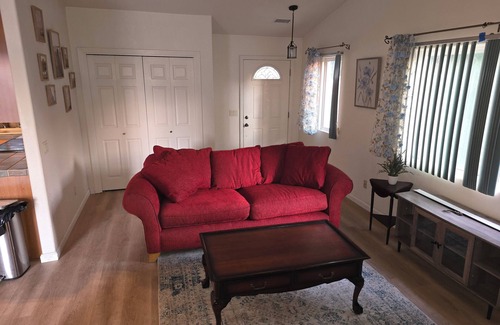Your cozy getaway awaits in Ramona at this lovely guesthouse with its own private driveway and a secluded private backyard under a shady peppercorn tree. This soothing retreat features a private bedroom with a queen bed, a fully stocked bathroom with a standing shower, and an family room with a sleeper couch that hides a comfortable queen bed. You'll find a full kitchen, AC and heating, ceiling fans in every room, a washing machine, WiFi, , and much more to make your stay comfortable. We hope you enjoy what our place and our little slice of San Diego country, Ramona has to offer.