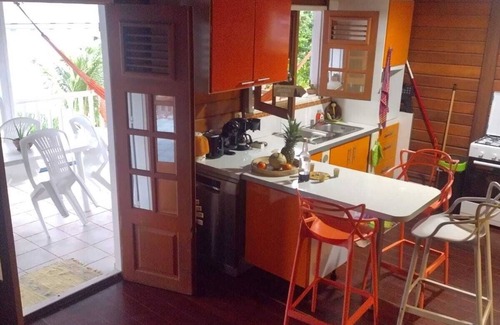 So that your alarms, far from all the urban fauna, are made to the sound of the lapping of the waves and the singing of the birds, quickly reserve this pleasant flat located in a calm and enchanting quarter with impregnable view on the sea and on the islet Wolf Garou. After your awakening, and to continue to relax in nature, always in the neighborhood, you can make beautiful walks on foot or by bike or water activities such as paddle .....