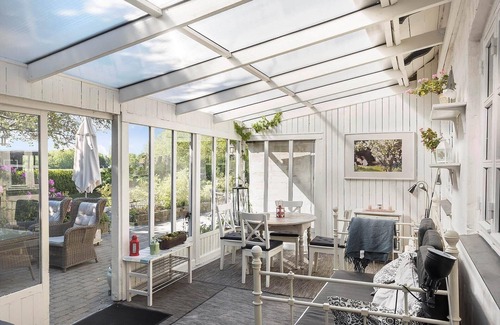 For entertainment, there is a TV, and amenities like a washing machine and dryer enhance comfort. High-speed Wi-Fi ensures connectivity. The spacious winter garden, complete with a daybed and dining area, becomes a gathering spot after a day of exploring the nearby beautiful nature experiences from Rødvig to Bøgeskoven. Guests can enjoy tranquility in a prime location, just 650 meters from Højerup Church and the stunning cliffs of Stevns. This setting promises relaxation, adventure, and unforgettable memories.
