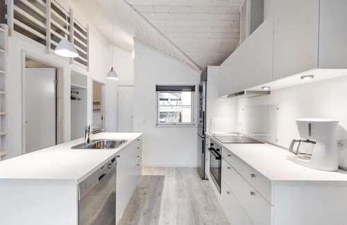 This beautiful, bright, and newly built EBK-Musholm house (completed in January 2019) is situated in a peaceful, idyllic holiday home area in Rødvig. The vacation domicile is just a short distance from a family-friendly sandy beach, forests, and scenic nature.