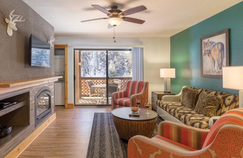At Red River, these spacious one- and two-bedroom resort suites comfortably sleep four to six guests. Resort suites feature a private bedroom with a king bed, a queen sleeper sofa in the living area and a guest room with one queen or two twin beds in the two-bedroom. Whether you're traveling with extended family or a smaller party, you will appreciate the privacy of separate bedrooms and the economy of a fully equipped kitchen. Plus, a dining area, living area, gas fireplace and TVs throughout are comforts that would be hard to find in an average hotel.