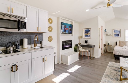 Enjoy a stylish experience at this centrally-located place! Only 7 miles away from Concord Mills, Charlotte Motor Speedway, and Concord-Padgett Regional Airport. This "tiny house" is in a quiet, safe, peaceful neighborhood in Concord, NC. This beautiful brand-new constructed home features modern furnishings and one queen-size bed with top amenities! You will also love the large yard (not fully fenced), covered back patio with fire pit, and an ideal location just a short drive to downtown Concord and all major uptown attractions such as the LightRail to SouthEnd, NoDa, and more! This home is great for a staycation, as a work-from-home alternative, or for small families. NOTE: Guests that book this property will get the entire home, including everything you see in the listing. Up to 2 CARS can park in the private driveway. NOW PET FRIENDLY! Dogs under 25lbs. allowed with pre-approval.