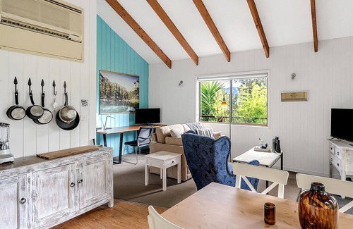 You’ll also appreciate the extra inclusions that make this leafy cabin feel even more like home, including wi-fi, air-conditioning, ceiling fans, porta cot and onsite parking for your convenience.