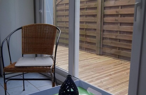 Private courtyard to park the car + 25 m2 courtyard, surrounded by walls and trees, with garden furniture, deckchairs and barbecue.