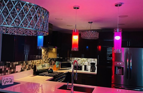 28-day plus stay. This is a smart condo with easy keyless entry, located less than a mile from the Palm Canyon strip. For security, there is a Ring device at the front door; guests can access the Ring.; just ask. Both the Primary and Guest bedrooms have Sleep Number beds to adjust to your personal sleeping preference, with USB side tables. The game room offers board games, books, tennis racquets (tennis courts on grounds), TV, and a queen size murphy bed. The living room SOBRO coffee table offers additional plugs for charging electronic devices only, Bluetooth device pairing (phone, tablet, laptop, TV) for surround sound, as well as a small fridge to keep your favorite drinks cool and at your reach. There is also an Alexa dot in every room. Cozy up around the electric fireplace on those chilly desert nights. Enjoy mountain views from the balcony patio and the pool. There are two pools. The northern pool is heated,, which is the pool to the right when facing the pool gate. There are also automated mood lighting throughout the condo to provide a luxurious and relaxing ambience.