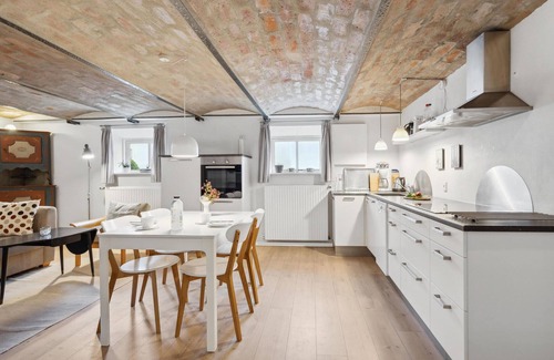 Enjoy the peace and relaxation in this charming, older farmhouse and feel at home in the bright and comfortable vacation apartment. The apartment's interior combines the distinctive vaulted ceilings with modern furnishings and lovely decoration, creating a soothing atmosphere. Put your feet up in the evening, read a book or watch your favorite series together.