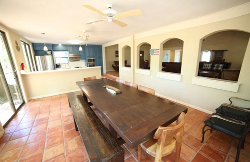 Come enjoy a relaxing vacation at this lovely creek view home! Lots of out door areas under the Live Oaks or plenty of room inside to enjoy family time. Fully stocked kitchen to cook all your meals or use the grill or smoker outside and have some delicious BBQ. Enjoy a fun game of pool or maybe some family game time around the large kitchen table. This house also includes the use of the fun cabin out back with bunk beds for a fun kids sleepover room! Bring your fishing gear and enjoy the creek fishing or just enjoy sitting outside in the very large back yard. Great for all sorts of outdoor games.