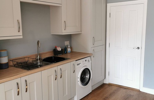 The small cosy lounge leads through to large kitchen diner with all your essentials to hand, including but not limited to: a washing machine, microwave, toaster, kettle, ironing board, iron, clothes dryer.