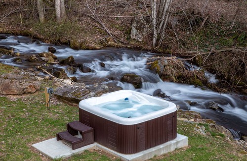 Relaxing Hot Tub by Creek, Fire Pit Near Smokey Mountain National Park | Cabin in Sylva, NC