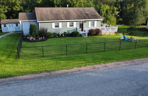 This river view ranch is located on a quiet dead end road. With 3 bedrooms and 2 baths 6-8 people will enjoy all the comforts of home. There is a pull-out couch in the main living area. Recently added central air for summer cool and a forced hot air furnace for winter warmth will comfort you in any season. The propane fireplace will help add to the romantic ambiance. While out on the deck you can relax on the comfortable deck furniture. There is a white picket fence to protect a dog or kids while they play. Plenty of parking space for vehicles. The dock slip can handle up to a thirty foot boat. Shore power, hot and cold running water are available for your boating needs. Possible additional pet and or dock fees may apply.