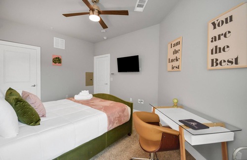 ♥ Remote Work ♥ Luxury Pink/Olive near Typhoon Waterpark & Katy Mills Shopping has 1 Bedroom , 1 Bathroom, and max occupancy of 3 people. The minimum rental for this property is 1 nights, but this can change depending on the season you plan on staying. Previous guests have given good rated it, and VRBO labeled it a top-rated Apartment because of the excellent services rendered by the owner or manager of this Apartment, and has consistently provided great experiences for their guests. Most families or guests that use it recommend it to their friends and some of them are repeat guests. Apartment has a friendly neighborhood, and the Katy has interesting places to visit. If you want to learn more about the Apartment in Katy, such as places to visit and things to do nearby, you can check below to learn more.