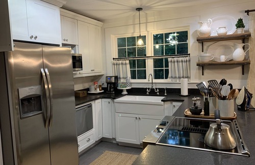 Remodeled 1940s home in downtown Mentone is non-smoking, pet-free, and a short walk to local shops and restaurants. It's also minutes from DeSoto Falls. The kitchen is fully equipped. The master bedroom features a king bed & sitting area; the second bedroom has a queen, and the living room offers a pullout couch. Relax on the front porch swing; soak in the freshly cleaned hot tub; or gather around the fire pit. Hiking, waterfalls, golf, and horseback riding are all nearby.