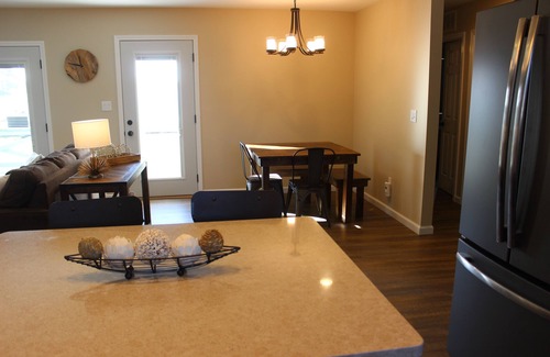 Remodeled Kitchen with breakfast bar and stools, dishwasher, kitchen table seats 8. All the basic necessities are included: coffee maker, toaster oven, microwave, stove/oven, refrigerator/freezer and all the cookware, dishes & utensils. Central air-conditioning and heat, big high definition flat screen TV in family room with local channels and satellite cable (with DVR), Apple TV and XM Radio (includes all sports programming). Washer/Dryer. Master bath with standup shower, second bath with a bathtub/shower. Deck, grill, table and chairs perfect for late night poker/board games, meals-overlooking the lakeside backyard and nightly sunsets.