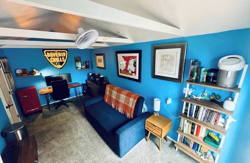 Please be advised that The Shack is frequently utilized as a workspace throughout the week. As such, it features an assortment of artwork and books that have been thoughtfully curated for the enjoyment of all who use the space.