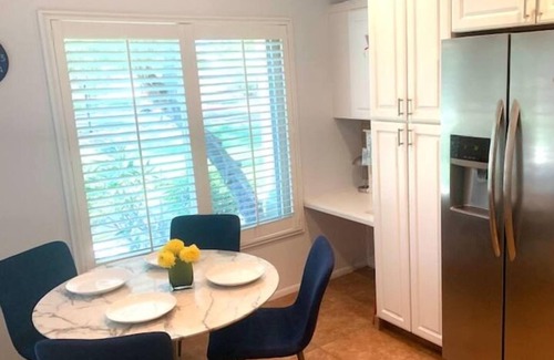 Enjoy your stay at this spotless townhome surrounded with our private park,trees,walking paths.Plenty of natural light to energize you while you are having coffee on skylight covered patio.Indoors cool enough to cook in fully equipped kitchen with bar,fire place and movie night.