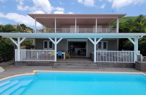 Villa overlooking the fishing village of Anses d'Arlet and the Caribbean Sea, 150 meters from the beach composed of 2 air-conditioned bedrooms, 2 bathrooms with Italian shower, separate wc, equipped kitchen, living room with television, mini-chain, Wireless. Large terrace with garden furniture, sea view, private swimming pool Washing machine. household linen provided (sheets, towels, tea towels), beach towels.