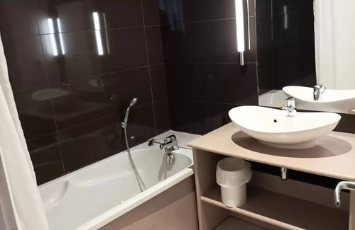 Accommodation: Located in the castle this apartment T3 for 6 people of about 55m2 is located on the third floor, exposed north.It includes: - an entrance, a living room with 1 convertible in 140 and an equipped kitchen (freezer fridge, microwave, electric hob, hood, dishwasher, oven, filter coffee maker, kettle, toaster)- a bathroom with separate toilet - 2 bedrooms with 140 bed Complementary services:Double sheets at 16 eurosSingle sheets at 8 eurosTowel kit for 4 euros per personGuests can enjoy free access to the water area, including a heated indoor swimming pool, a sauna with dressing rooms, sanitary facilities and showers.Free and accessible WIFIPossibility to have breakfast on site, by reservation at the extra rate of 10 euros per adult and 8 euros per child.An indoor garage and non-nominative outdoor parking are available.Pets are allowed at our property, for a surcharge of 5€ per night