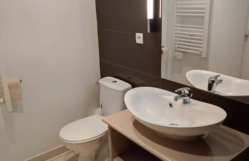 Accommodation: Located in a building adjacent to the castle with an indoor garage and parking. This 4 person studio of about 27m2 is located on the first floor, offering a terrace of 8m2 facing north. It includes: - an entrance, a sleeping area with a double bed in 140 and a kitchenette (freezer fridge, electric hob, hood, dishwasher, filter coffee maker, kettle, toaster)- a stay with 1 convertible in 140 and a TV- a bathroom with toiletComplementary services:Double sheets at 16 eurosSingle sheets at 8 eurosTowel kit for 4 euros per personGuests can enjoy free access to the water area, including a heated indoor swimming pool, a sauna with dressing rooms, sanitary facilities and showers.Free and accessible WIFIPossibility to have breakfast on site, by reservation at the extra rate of 10 euros per adult and 8 euros per child.An indoor garage and non-nominative outdoor parking are available.Pets are allowed at our property, for a surcharge of 5€ per night