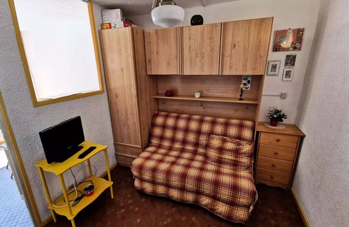 Accommodation: Studio sleeping area - 4 people Direct access to the beach - A living room with a sofa bed for two people - A sleeping area with bunk beds - Equipment: TV, electric hob, microwave, mini-oven, fridge-top, washing machine - Surface of 22 m² with a balcony of 5 m² - South-West exposure - Beach at 50 m and center at 700 m - Communal car park at 300 m - Third floor with elevator
