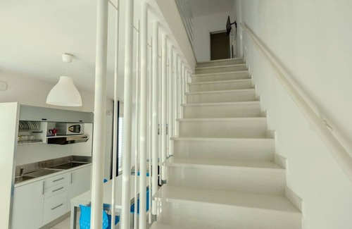 Il bilocale, invece, si sviluppa su due livelli ed è ideale per chi desidera più spazio e comfort. Al piano terra si trovano una luminosa zona giorno con cucina, zona giorno, due letti singoli e un bagno mentre al piano superiore si trova la camera matrimoniale con bagno privato. L’appartamento dispone anche di terrazzini perfetti per godersi a pieno l’aria aperta a due passi dalla spiaggia.