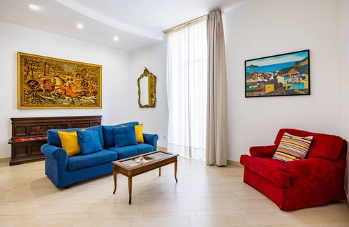 Spacious and full of natural light, this two-level apartment is just a short walk from Piazza Dante, inside a historic building with an elevator. On December 5th, 1861, Baroness Irene Cecconi gave birth here to Armando Diaz, the renowned general known for the Italian victory in World War I.Upon entering, guests are welcomed into a large living room furnished with a double sofa bed, TV, and a dining table. A separate kitchen, fully equipped with an oven and kettle, also offers access to a balcony overlooking the inner courtyard. The main level features two bedrooms, each with a queen-size bed and a desk, and two bathrooms with showers—one of them ensuite.A wooden spiral staircase leads to the mezzanine floor, where a third bedroom with a queen-size bed and a single bed is located, along with another ensuite bathroom with a shower.The apartment is equipped with free Wi-Fi, air conditioning, heating, and a washing machine.*Upon arrival or a few days before arrival it may be required to pay a tourist tax, which varies according to local regulations. You will find your reservation details within the Guest Area of Wonderful Italy.“When you go to Naples you cry twice: when you arrive and when you leave”, people say. Naples is a unique city, to experience by walking through the alleys, smelling the scent of gastronomic delicacies in the air and admiring its rich artistic and monumental heritage. Naples is at the origin of a peculiar culinary tradition for its famous Neapolitan pizza, and the art of its pizza makers has been declared an intangible Heritage of Humanity by UNESCO.Walking through Spaccanapoli, the street that cuts the city in half, you will cross its millenary history thanks to the presence of ancient palaces and churches, such as the Cathedral of Naples and the Maschio Angioino. If there is a symbolic place of Naples, this is Piazza del Plebiscito, today a symbol of the new "Neapolitan Renaissance" where tourists come to admire its grandeur and its two jewels: the neoclassical colonnade of the church of San Francesco di Paola and the Palazzo Reale. Today it is also possible to visit "the underground city", or the so-called "womb of Naples", used by the Neapolitans as a refuge during the bombings, where tourists can cross the Greco-Roman aqueduct, the air-raid shelters and finally visit the Museum of the War.Not to be missed is San Severo Chapel which houses the sculpture of the Veiled Christ, one of the most fascinating and mysterious works that can be seen in Naples, the result of the talent of Giuseppe Sanmartino.Napoli Central station is around 2,5 km from the apartment, while Naples Capodichino airport is easily reachable in less than 15 minutes by car.