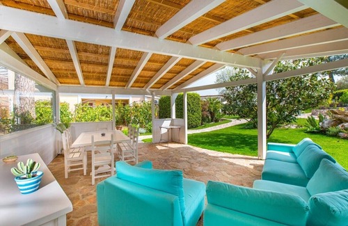 Facilities: Air conditioning (throughout the villa), Central heating, Internet Wi-Fi, TV, Kitchen, Fridge freezer, Oven, Microwave, Dishwasher, Dishes/Cutlery, Kitchen Utensils, Coffee machine, Toaster, Kettle, Juicer, Washing machine, Iron, Bed linen, Towels, Hairdryer, Highchair, Cot, Alarm, Safe, Garden, Terrace, Balcony, Gazebo with bar, Outdoor dining, Barbecue, Outdoor showers, Gym/fitness centre, Onsite parking.
