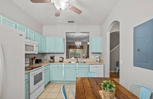 Located just 8.8 miles from Disney this spacious 3-bedroom, 2.5-bathroom townhouse is located in a beautiful resort packed with fun for everyone. Whether you’re floating down the lazy river, playing games in the arcade, relaxing at the spa, or splashing in the pool, there’s something here for the whole family to enjoy. With a fully equipped kitchen and cozy living spaces this is your home away from home for a unforgettable vacation!