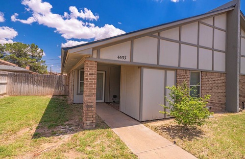 this two bedroom one bath home is located next-door to Northtown Place. Feel free to request both units if you'd like a four bedroom three bath home with the privacy of separate living and dining areas great for crews who are in town for work or large family or two families coming in for a baseball tournament units are fully equipped with kitchens linens and outdoor dining facilities located on a corner with easy access to loop 250 and all that the city provides. Enjoy your stay .