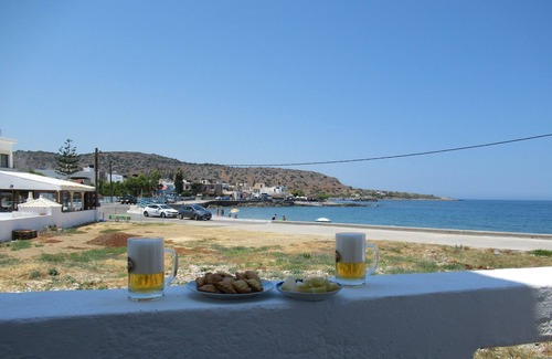 A great appartment with two bedrooms, one bathroom, kitchen and dining area. With a front yard and balcony with an amazing view of Milatos Beach. It also includes a back balcony with mountain view. The appartment is only a few meters away from the beach and local restaurants.