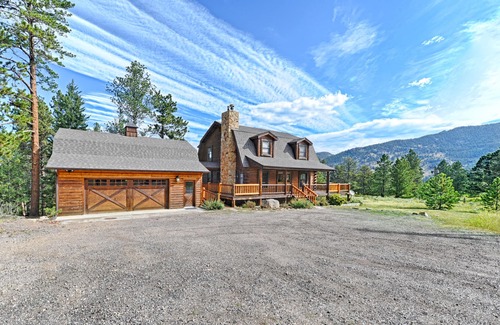 Larimer County License: 20-NCD0279 Rivendell is our traditional mountain log cabin home with plenty of comfortable acreage and amazing mountain views of the Continental Divide in Rock Mountain National Park! We have a new 7 person hot tub too! We offer a beautiful log-paneled living room with two story ceilings. and a fully equipped kitchen for entertaining. Our favorite room is the sun porch, with ceiling to floor windows looking out at the forest and including stunning views of Mount Ypsilon, Fairchild Mountain, and Chiquita Peak. We spend hours here each morning enjoying the views of mountains, forest, and various wildlife on our 2 ½ acre property. Our guests have seen deer, elk, turkey, moose, black bears and wonderful birds, rabbits and chipmunks.