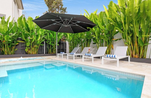 The outside pool area consists of an Ozone Mineral salt pool and spa. There is also an outdoor hot / cold shower and lounge chairs. There is also a small patch of grass as the property is pet friendly for small dogs only which a strict rule that the animal does not sit on any lounges or beds and does not go into the pool or spa. Our property is brand new, with brand new furniture so we would like to protect this and keep it that way for all of our future guests.