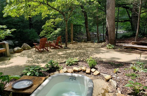 At the edge of the Nantahala National Forest and along a Scenic Byway and a Hatchery Supported River you will find some of the best trout fishing in the county. You might be the next one to catch the next large trout! Or, you could just enjoy a glass on wine while sitting on the river's bank in beautiful Adirondack chairs or in a 2 person steaming claw-foot bathtub outside.
