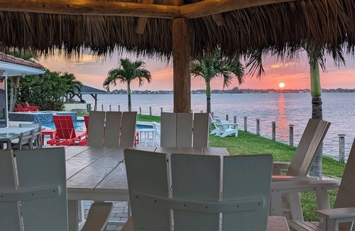 Escape to paradise at this exquisite 5-bedroom luxury home perfect for large groups and families. The house is on the riverfront with amazing views of playful dolphins, sunrises, sunsets, and rocket launches. Indulge in leisure with a private pool and soothing hot tub, or explore the nearby beach on provided bicycles. Inside, fun awaits in the well-equipped game room complete with foosball, air hockey, and more. With meticulous attention to detail, the thoughtfully designed interiors provide comfort and safety. Amazing riverfront views, a relaxing atmosphere, great amenities, and all the Cocoa Beach venues and activities set the stage for crafting unforgettable memories. Whether you're lounging by the pool, hanging out in the game room, cycling along the beach, surfing, playing tennis or a round of golf, shredding at the skate park, enjoying live music at a local restaurant, watching a rocket launch, or marveling at dolphins' graceful performances in the shimmering waters, your dream vacation starts here!