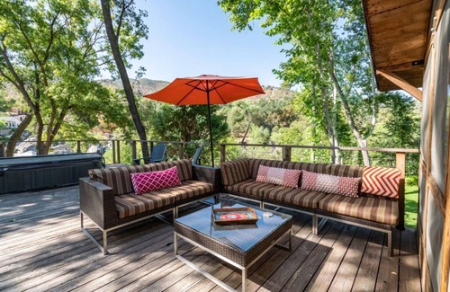 Our property is located 5 minutes from the entrance of the Sequoia National Park right on the Kaweah river. In front of the house is a secluded beach with a calm swimming hole—perfect for families to spend the day soaking up the sun. The deck surrounds the house on two sides with amazing views of the garden and the river. After a long day at the park, use the grill and the fully stocked kitchen to prepare a feast for the whole family, then sit in the hot tub and relax for the rest of the evening.