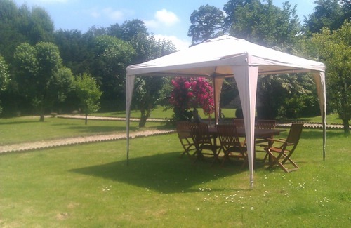 Spacious three bedroom cottage adjoining Manor house with high walled garden and access directly onto the riverbank. The cottage has one bedroom on the ground floor with a double bed a single bed, a lounge, bathroom and newly refurbished kitchen. Upstairs there are two bedrooms one with double bed and cot, one with double bed and bunk beds plus another bathroom. The cottage has satellite TV, washing machine, dishwasher, barbecue, bed linen is provided. The location is perfect - peaceful on the edge of Josselin beside the river, yet within 5 minutes walk of the centre of town, the boulangerie and the shops bars and restaurants. The imposing Chateau is just a stroll along the river and from there is easy access to the timber framed medieval centre with historic Basicila. Tours (in English) are available for both. Ten minutes away at the Lac au Duc you can find water sports and a 9 hole golf course. Horse riding and cycling and boat hire are all available nearby. It is also great for walks.
