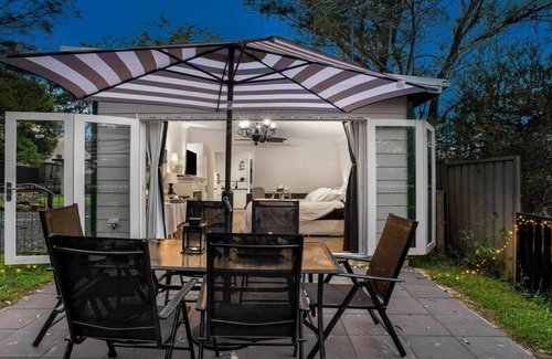 Indulge in a serene retreat where you can relax and unwind under twinkling stars peeking through the swaying eucalyptus trees. Begin your day with the gentle hues of rosy clouds, sipping on a warm cuppa by a crackling fire or enjoying a delightful breakfast in bed. If you have a furry friend, bring them along to frolic in a private fenced backyard. Just a short 25-minute stroll or a quick 4-minute drive away lies the charming village and picturesque lake, offering opportunities for a leisurely country lunch or the option to order a delightful picnic hamper to relish in the comfort of your cozy studio. Whether you're seeking inspiration or simply yearning for a peaceful work environment, this retreat is the perfect sanctuary to rejuvenate your spirit and spark creativity.