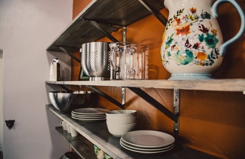 Rock Rest Eco-Cabin was built by the owners in 2018. It is thoughtfully designed with modern lines and rustic textures. Lots of special features. The bedroom has a queen bed and a suspended bunk bed. The back balcony overlooks the valley with farmland beneath the Pikes Peak mountain range. The bathroom is a perfectly clean and efficient space. The shower has a unique stainless steel surround with a polished river rock mosaic floor. With our new water well and tankless water heater you can always have a long hot shower. The kitchen is fully stocked with everything you need to make a nice meal. The appliances are stainless steel and the counters are custom made with inlaid polished stone and fossils. The living room has a custom built twin XL daybed. A Smart TV with Netflix, Bluetooth sound bar, HD DVD player, industrial and rustic furniture. The HUGE Sliding glass door addresses the large deck with a twin XL swing and the beautiful forest and meadow where the deer frequently graze.