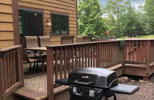 Perfect for the whole family! The kids can play games and watch TV in the Bear Cave while parents enjoy free-time in the adjacent open living room, dining area and kitchen. Relax in the private hot tub, barbecue on our gas grill, and enjoy dinner on the spacious deck.