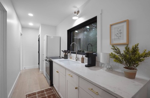 This cabin comes with a beautiful modern and "tiny" kitchen. Equipped with everything you will need for your stay!