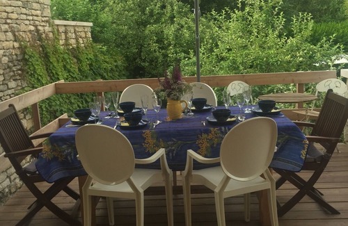 Keywords: Romantic, gite, stone home, converted barn, artist studio, loft, open modern kitchen, terrace,medieval village,